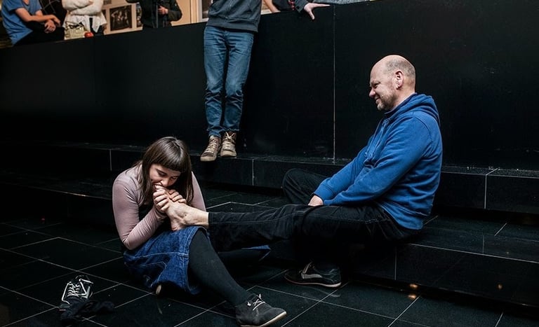 This is the video installation in which we enter into a relationship with the body from different levels. On the one hand, it is a process in which the dancer recognizes his own body through its small movements, directions, changes, but the camera is not indifferent. It is an image of a person who, through observation, enters into a relationship with this body. The Watcher enters into a relationship with the process of discovering the dancer 's own body and discovers his body as another person. The intimacy of this encounter is broken by the third context, however. The video is played on the surface of water, which the recipients can freely touch - thus changing the shape of this body. They can enter into an intimate relationship with the hologram of the relationship between themselves, their own body and between the observer of the dancer's body and the process of getting to know this body by the dancer himself and between its relationship with the illusory projection of the bodies of another.